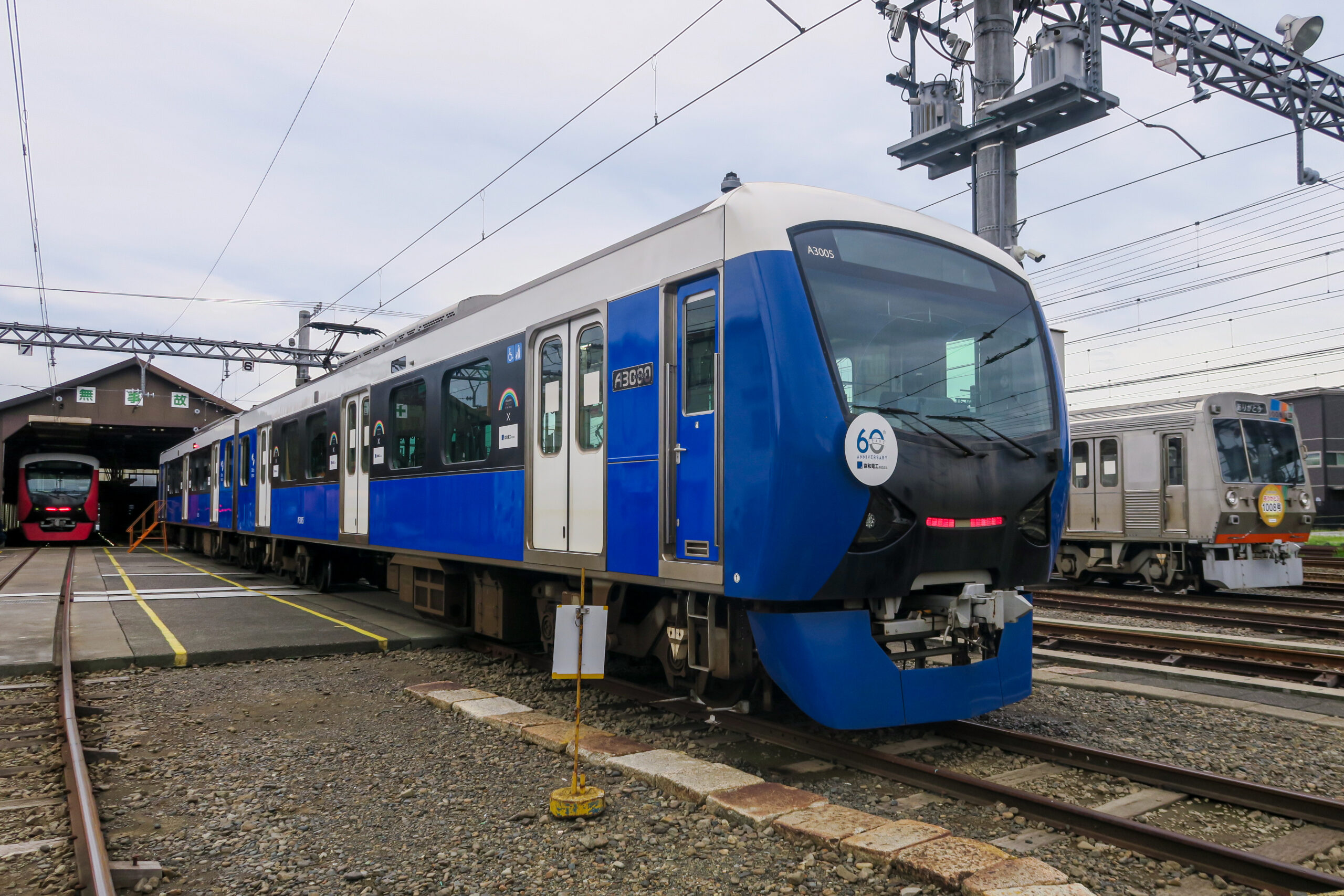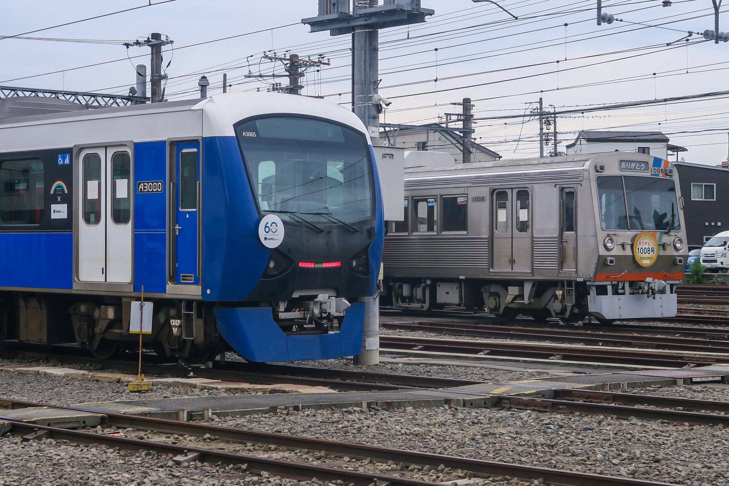 「しずてつレインボージャック」を実施中のA3000形3005号と先日引退した1000形。
