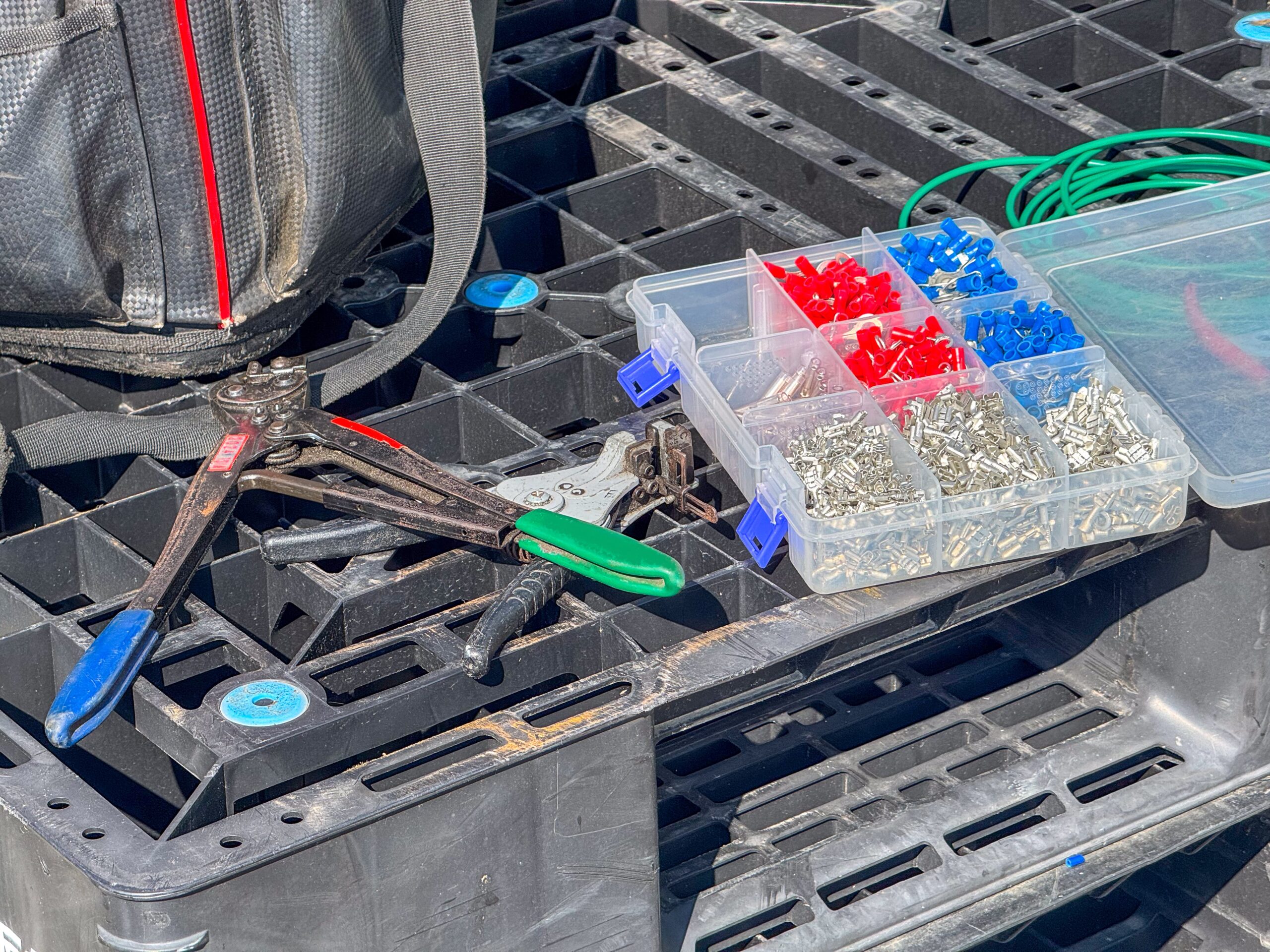 鉄道電気工事で使用する工具類。