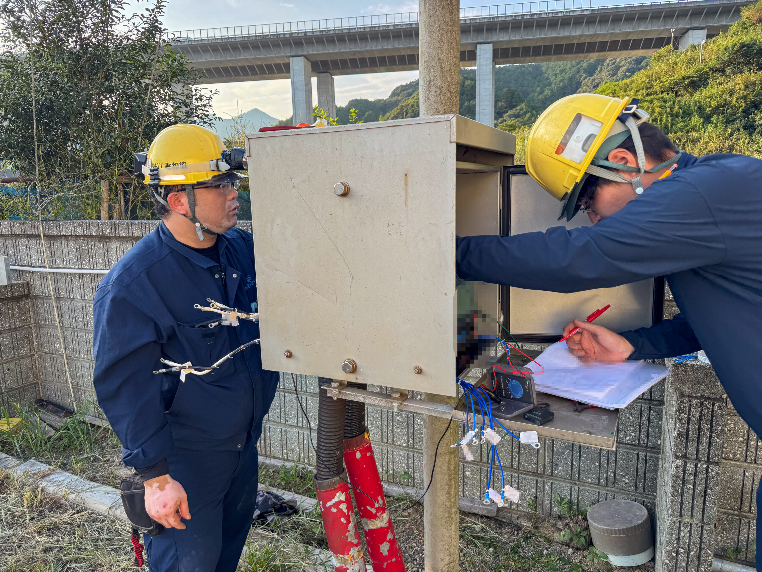 自分たちの配線に誤りが無いか、図面やテスターを活用しダブルチェックを行います。